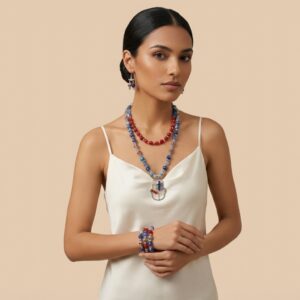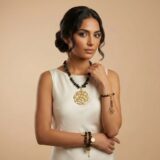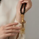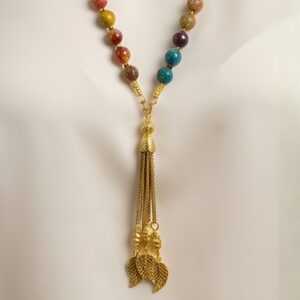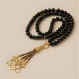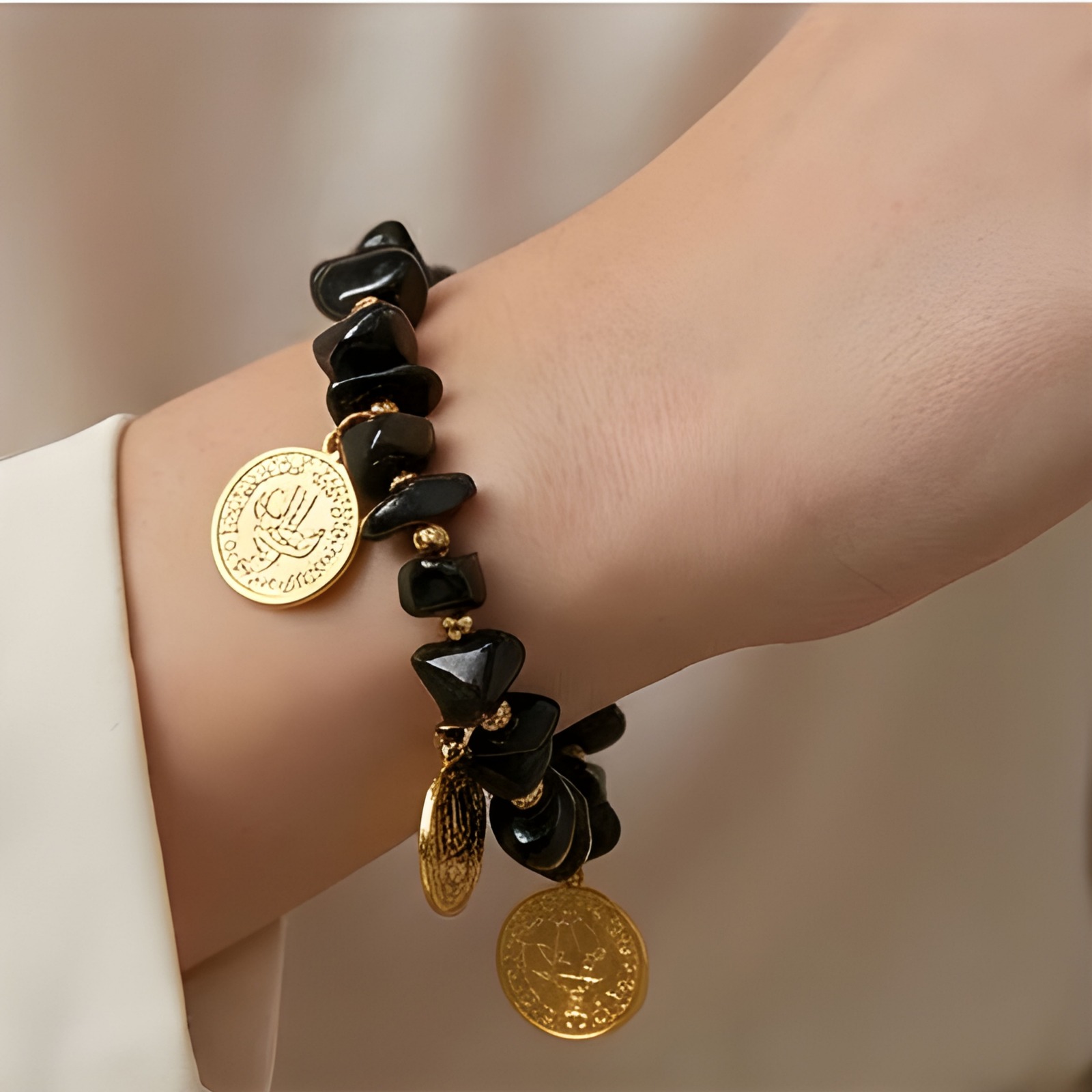 Natural black Onyx stones with a bold, textured gold-tone pendant, creating a piece that balances softness and strength with effortless elegance.