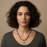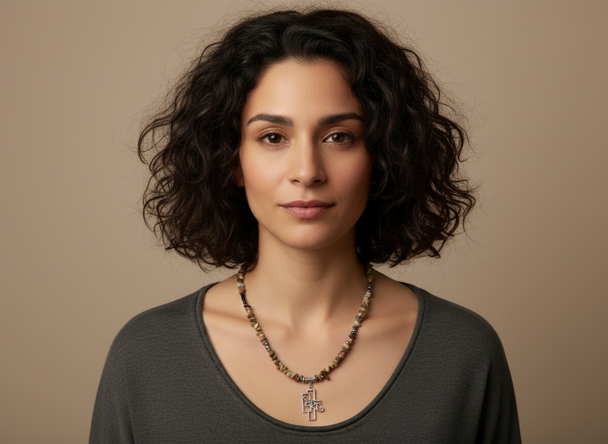 A handcrafted necklace featuring earthy natural stone chips and a symbolic Eye of Horus pendant. A grounded, minimalist piece that reflects protection, balance, and quiet strength.