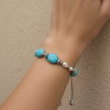 Materials : Blue Howlite, Pearl-Tone Beads , Stainless steel Dimentions