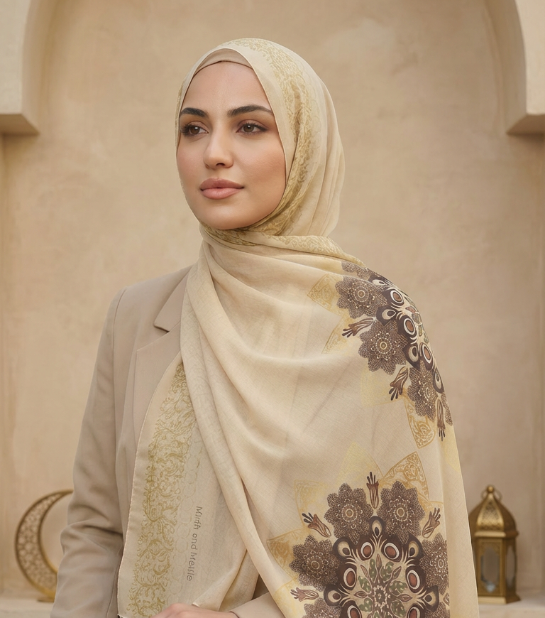 Arabia is a calm, elegant scarf inspired by warm earthy tones and subtle heritage patterns. Designed to flow effortlessly, it adds a sense of serenity and refined beauty to both everyday and special looks.